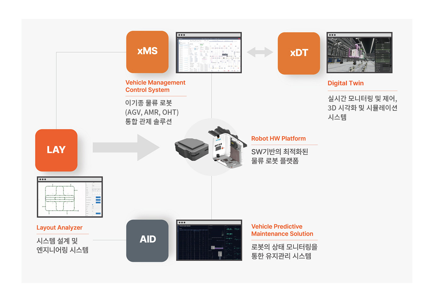 SW 기반의 최적화된 물류로봇(AGV, AMR, OHT) 플랫폼을 제공합니다.